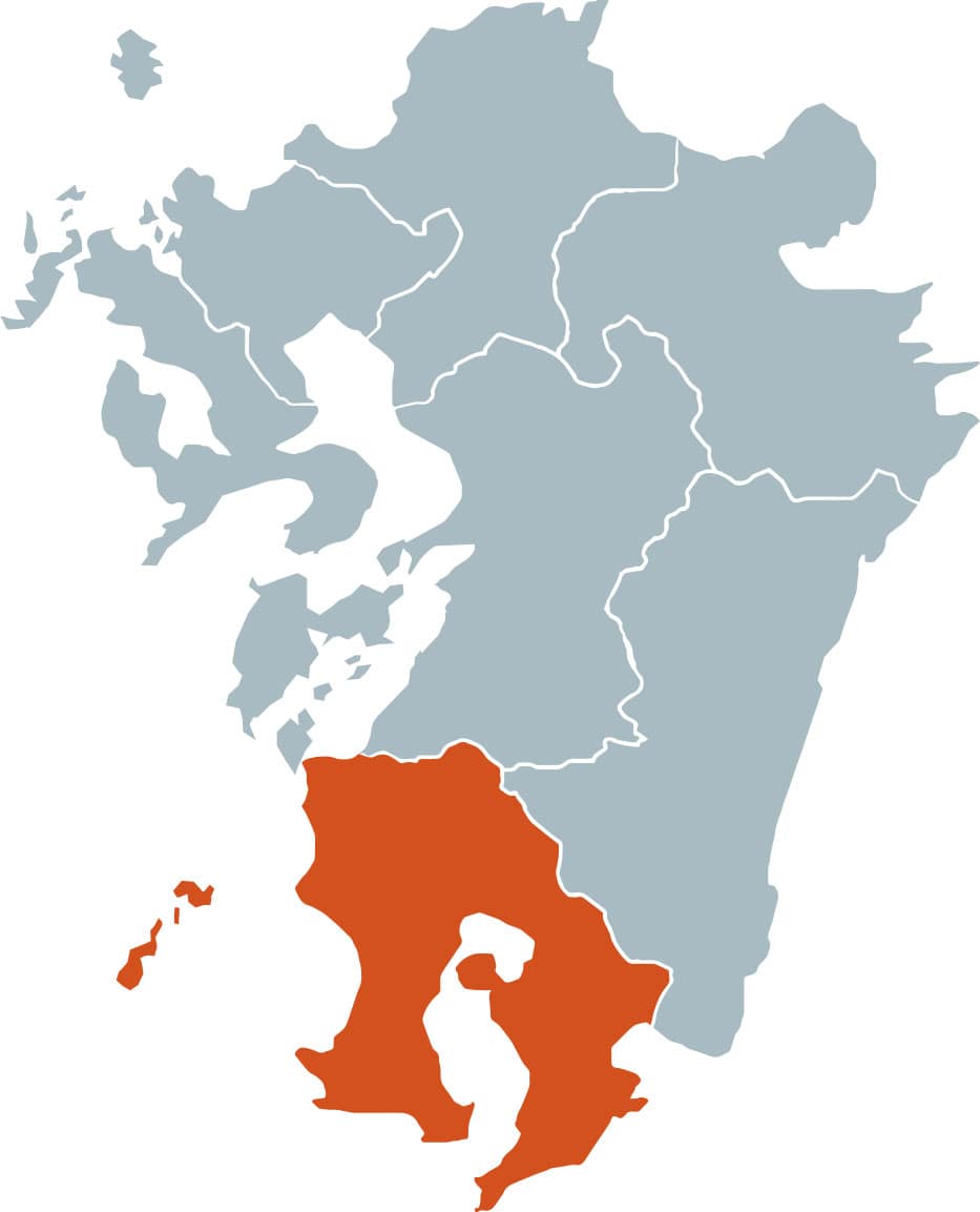 鹿児島県は九州の南端に位置する県です。県庁所在地は鹿児島市になり、その対岸には活火山である桜島がそびえています。