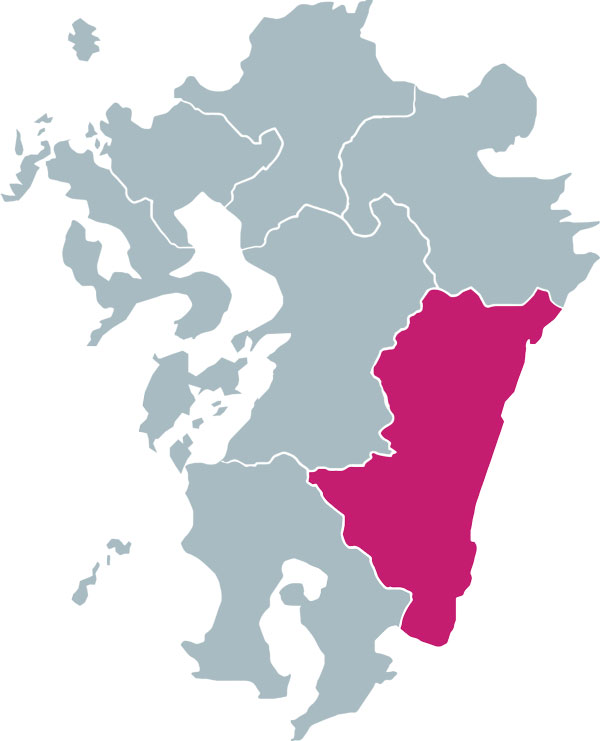 宮崎県は、日本の九州地方に位置する県です。鹿児島と合わせて南九州地方と呼ばれることもあります。