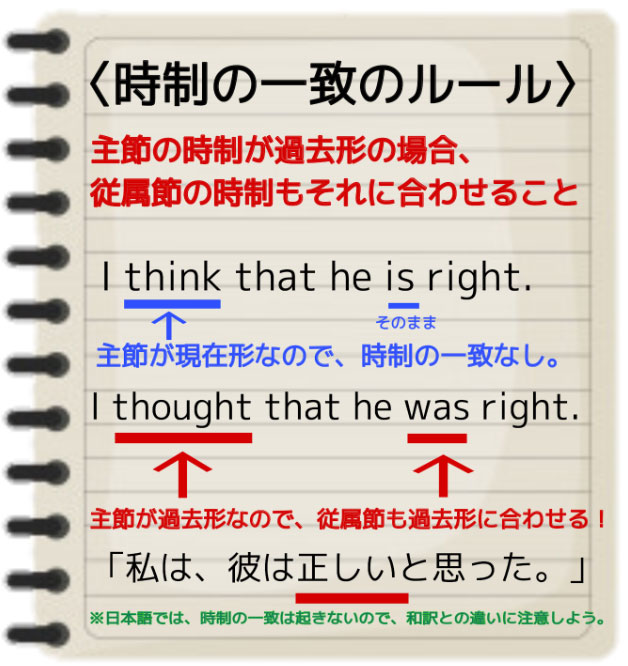 その部分に意識を持っていってください。また、それに慣れるためにも、今回の時制の一致についての解説を英語学習に大いに役立てて欲しいのです。